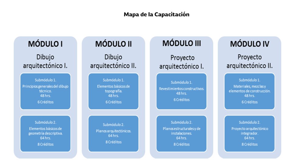 Esta capacitación prepara a los estudiantes para utilizar diversas técnicas para la elaboración de planos arquitectónicos y constructivos, así como promover los conocimientos matemáticos necesarios que dicha elaboración implica y aplicarlo a su entorno.