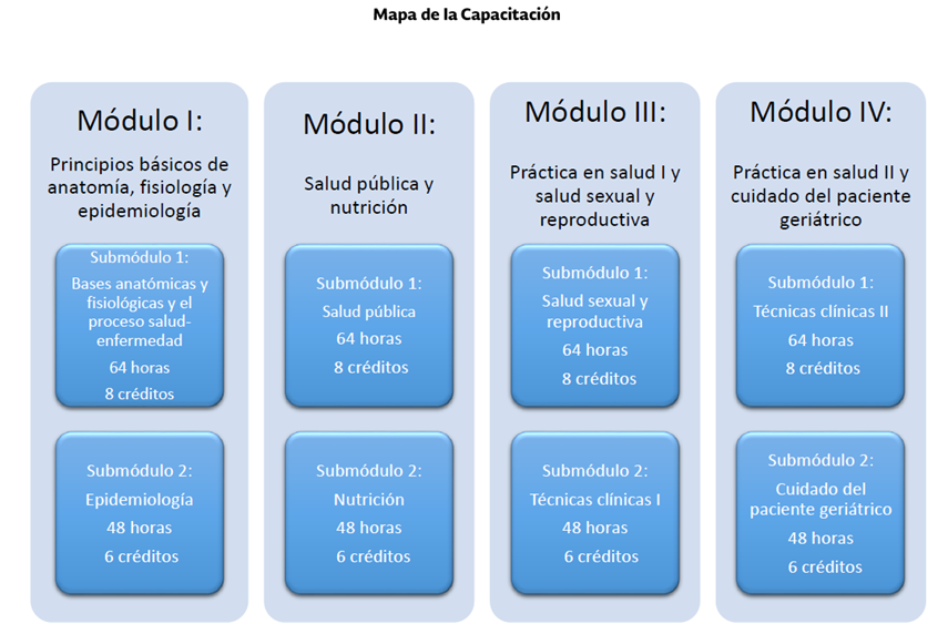 Esta capacitación para el trabajo tiene como propósito que el estudiante estructure las bases del conocimiento en el área de la salud. Esta capacitación vincula conocimientos y metodología de las áreas de Medicina preventiva, a nivel de promoción y educación para la prevención de enfermedades.